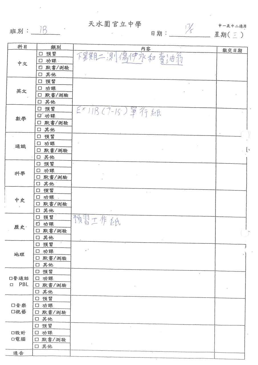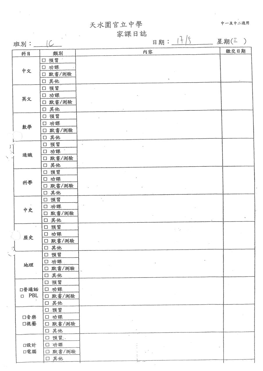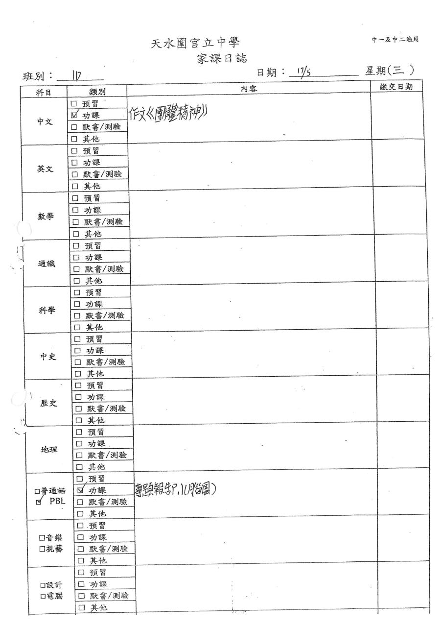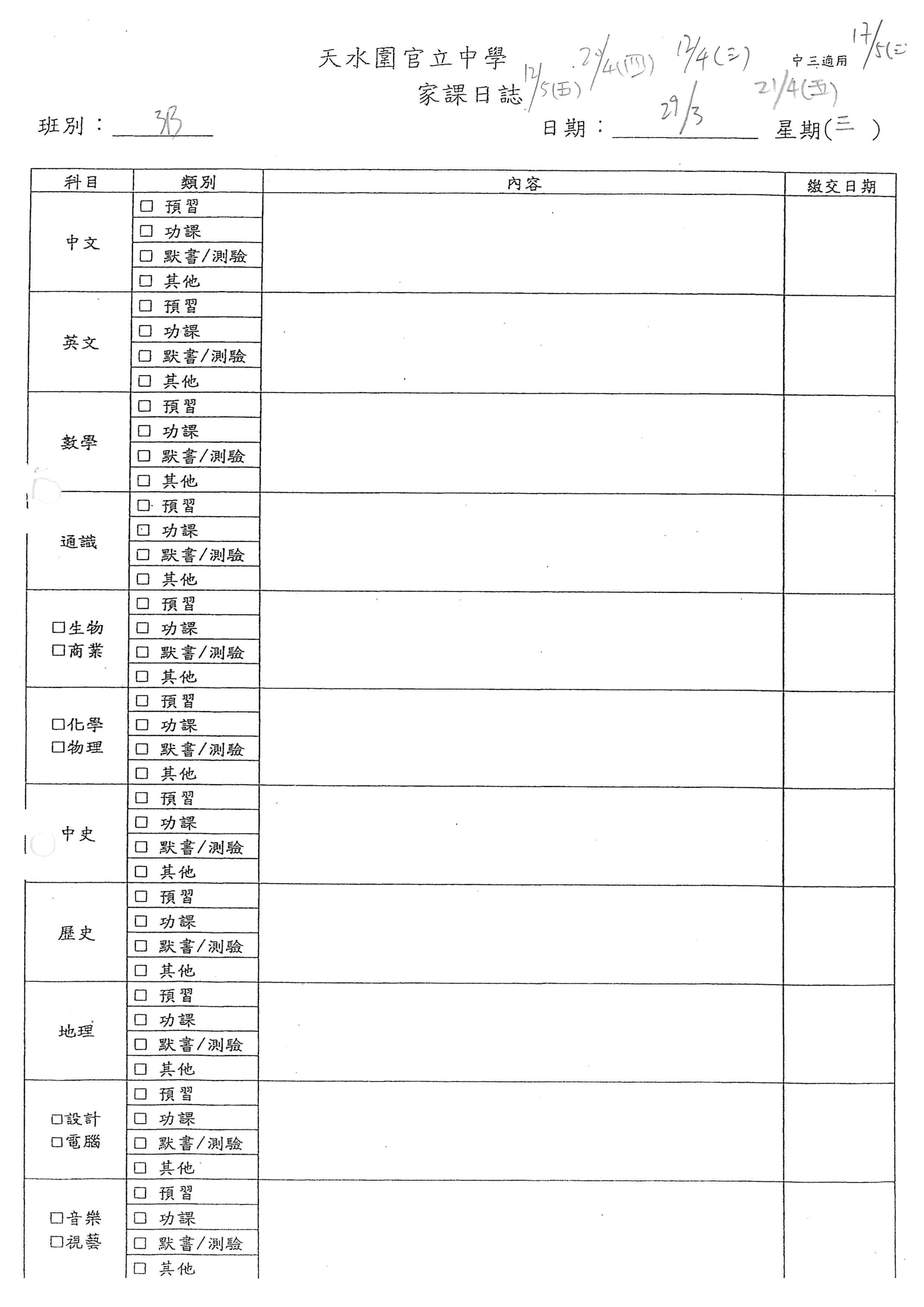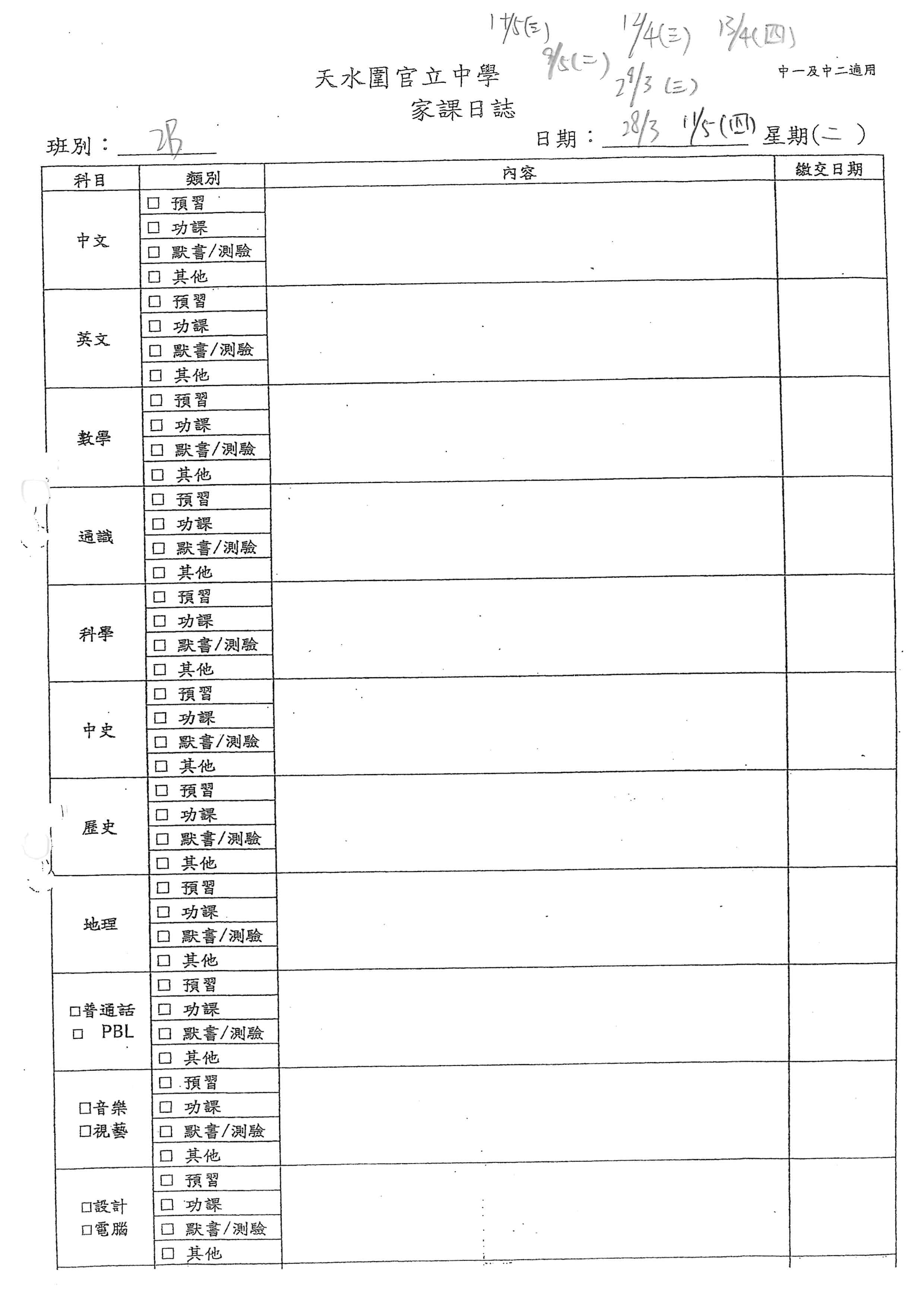 初中家課表